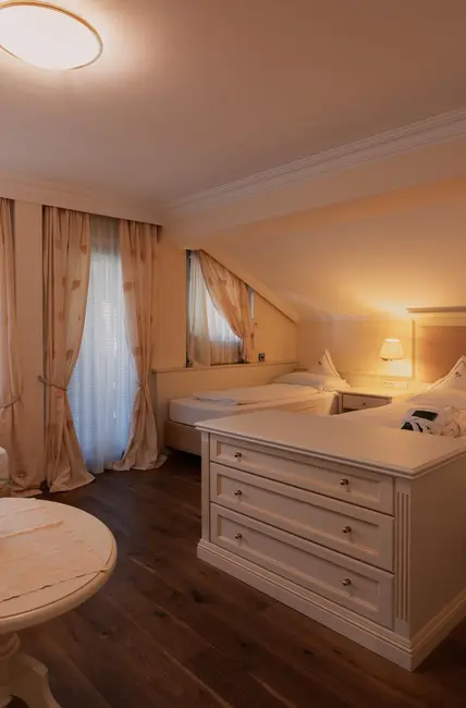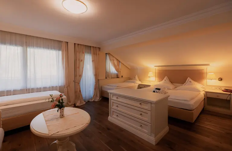 Das Zimmer verfügt über vier feste Betten und eignet sich ideal für Familien oder Gäste, die gemeinsam reisen.