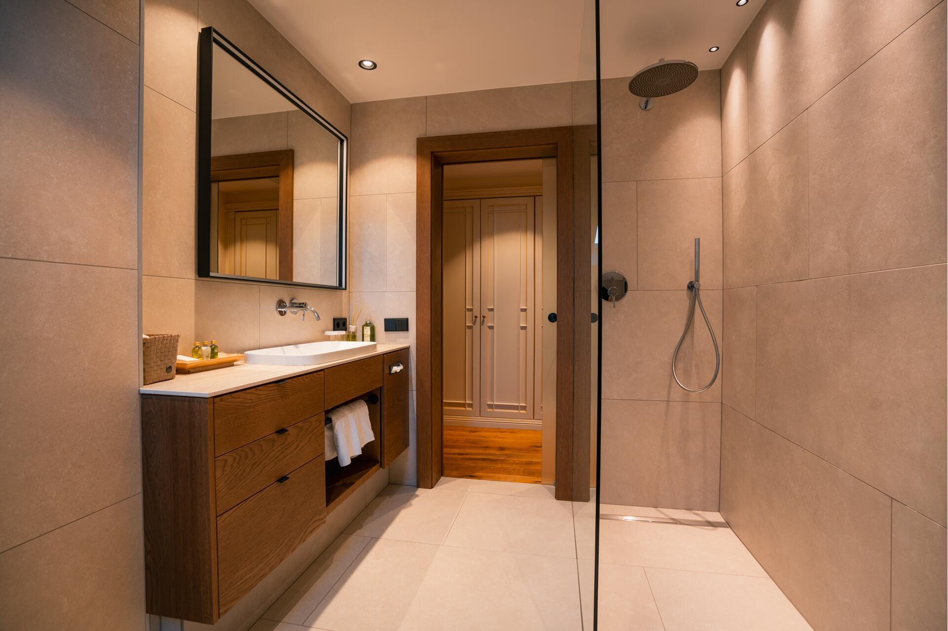 Das neu gestaltete Badezimmer ist mit Dusche/WC ausgestattet.