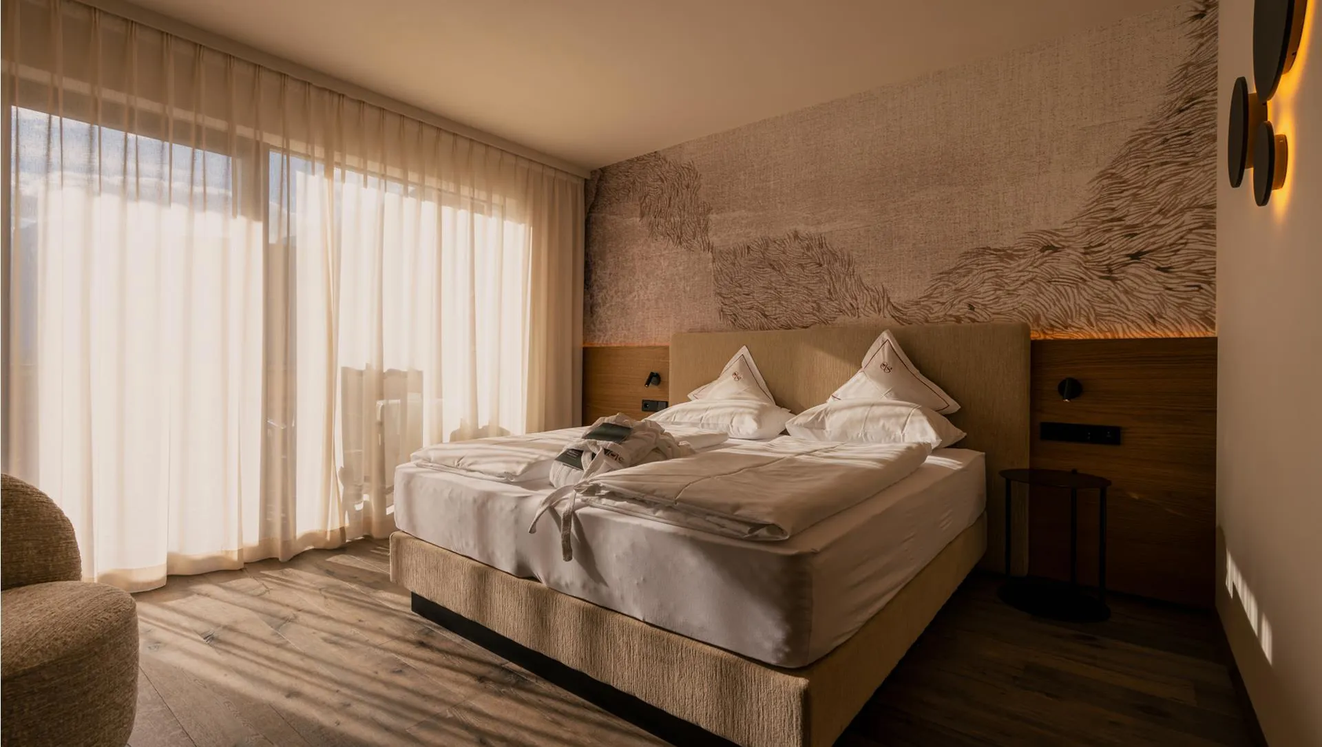Natural materials, warm colour tones and a carefully designed lighting concept create a calm, elegant atmosphere for relaxation and well-being.